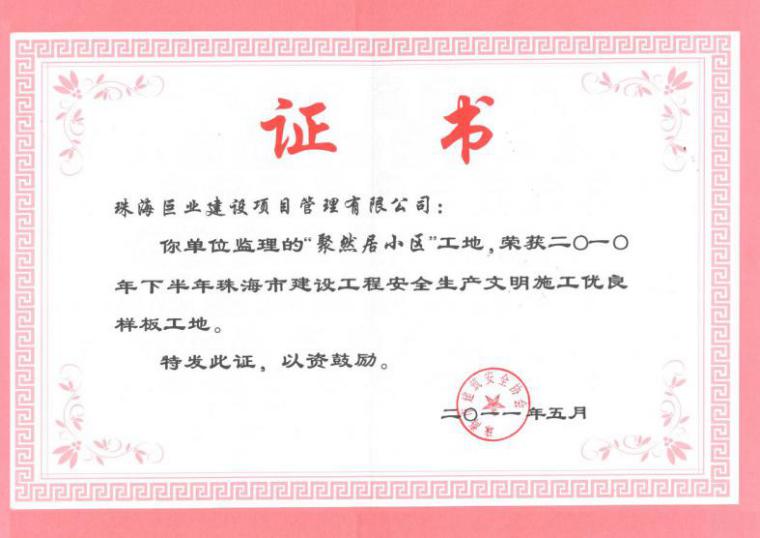 关于表彰2021年度珠海市监理行业先...